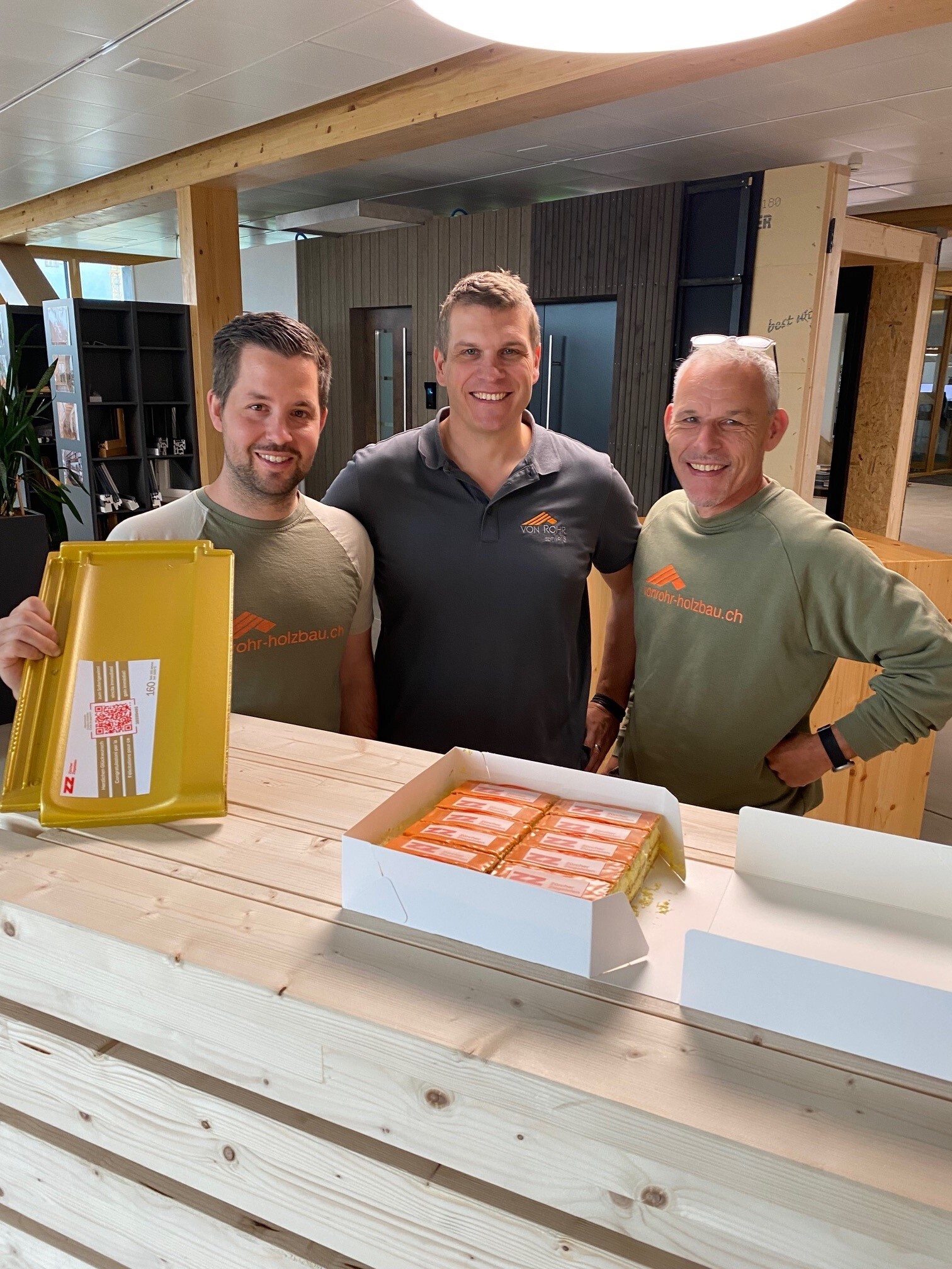 Les conseillers de vente des Zürcher Ziegeleien ont également été très actifs en mai et ont distribué avec zèle un «Zmorge», un «Znüni» ou un «Zvieri» aux gagnants du concours d'anniversaire de l'entreprise traditionnelle zurichoise. Dans le cadre des festivités du 160e anniversaire, 300 tuiles et briques dorées ont été produites et livrées. Les personnes qui les ont trouvés ont eu droit à une collation à leur convenance - toutes nos félicitations!