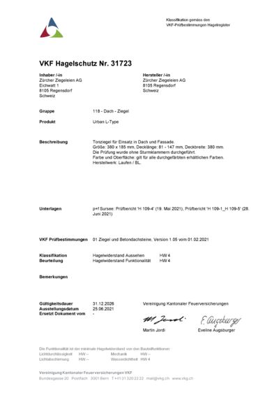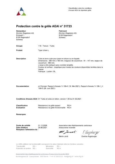Urban L - Prüfbescheinigung Hagelschutz